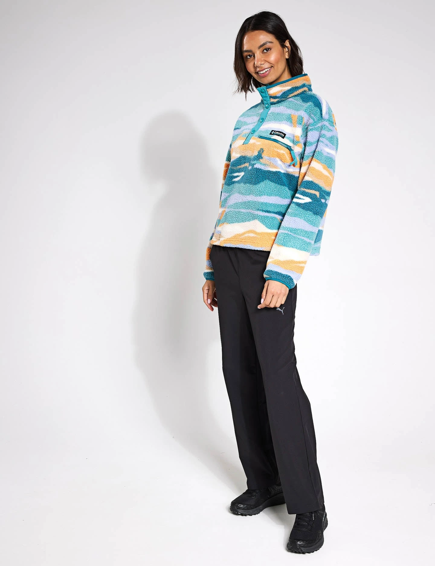 Lightweight yet cosy, the Helvetia II Cropped Sherpa Half Snap Printed Fleece printed fleece is designed for explorers who love a pop of colour. The half-snap closure allows for easy layering, while the zippered chest pocket keeps your essentials close. Whether hiking, camping, or just keeping cosy, it’s a must-have layer for cooler days.