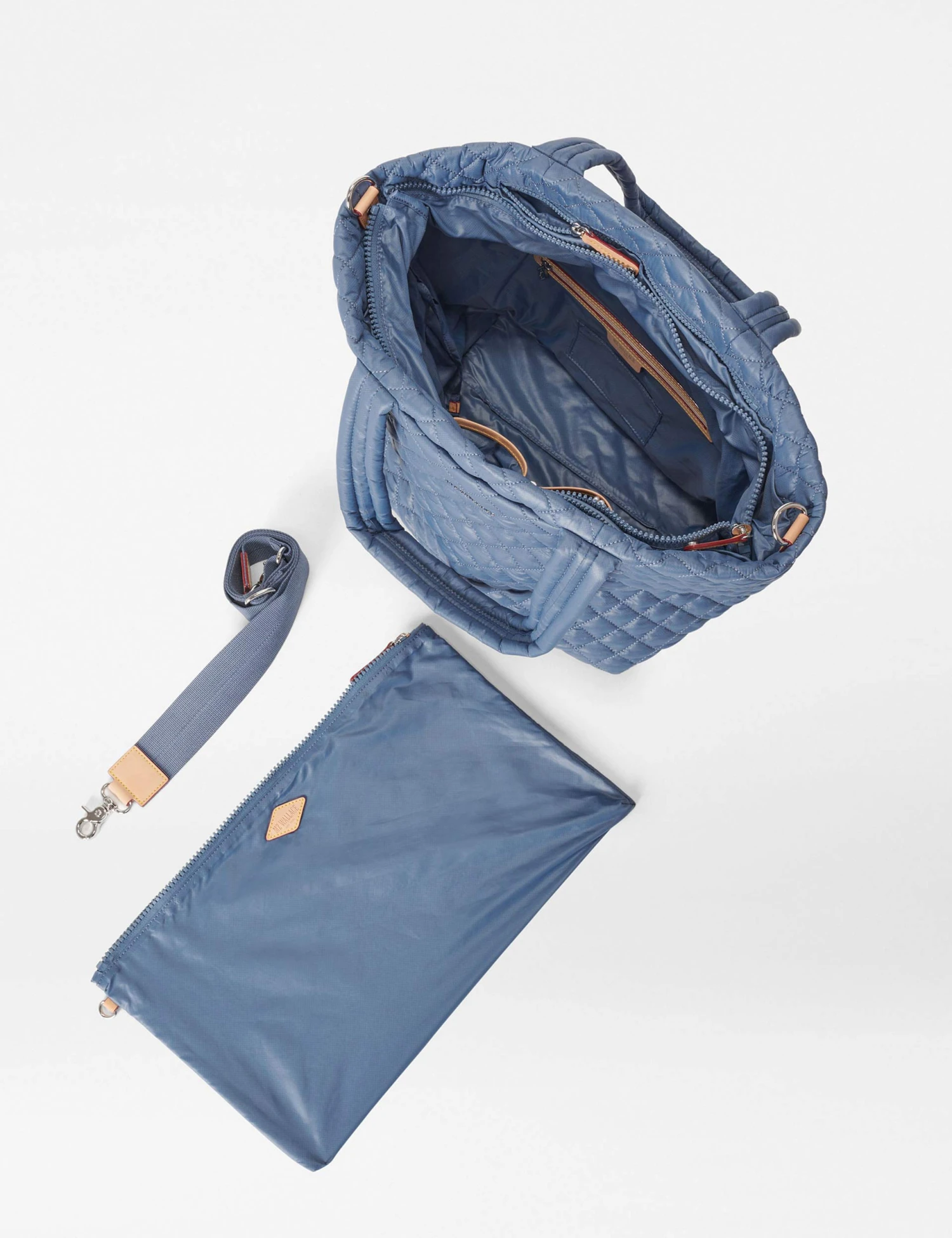 Gym, work or overnight stay, the MZ Wallace Medium Metro Tote Deluxe in Denim blends function with fashion. Foldable, packable and crushable, this premium bag is filled with luxe details and trims for an elegant finish.