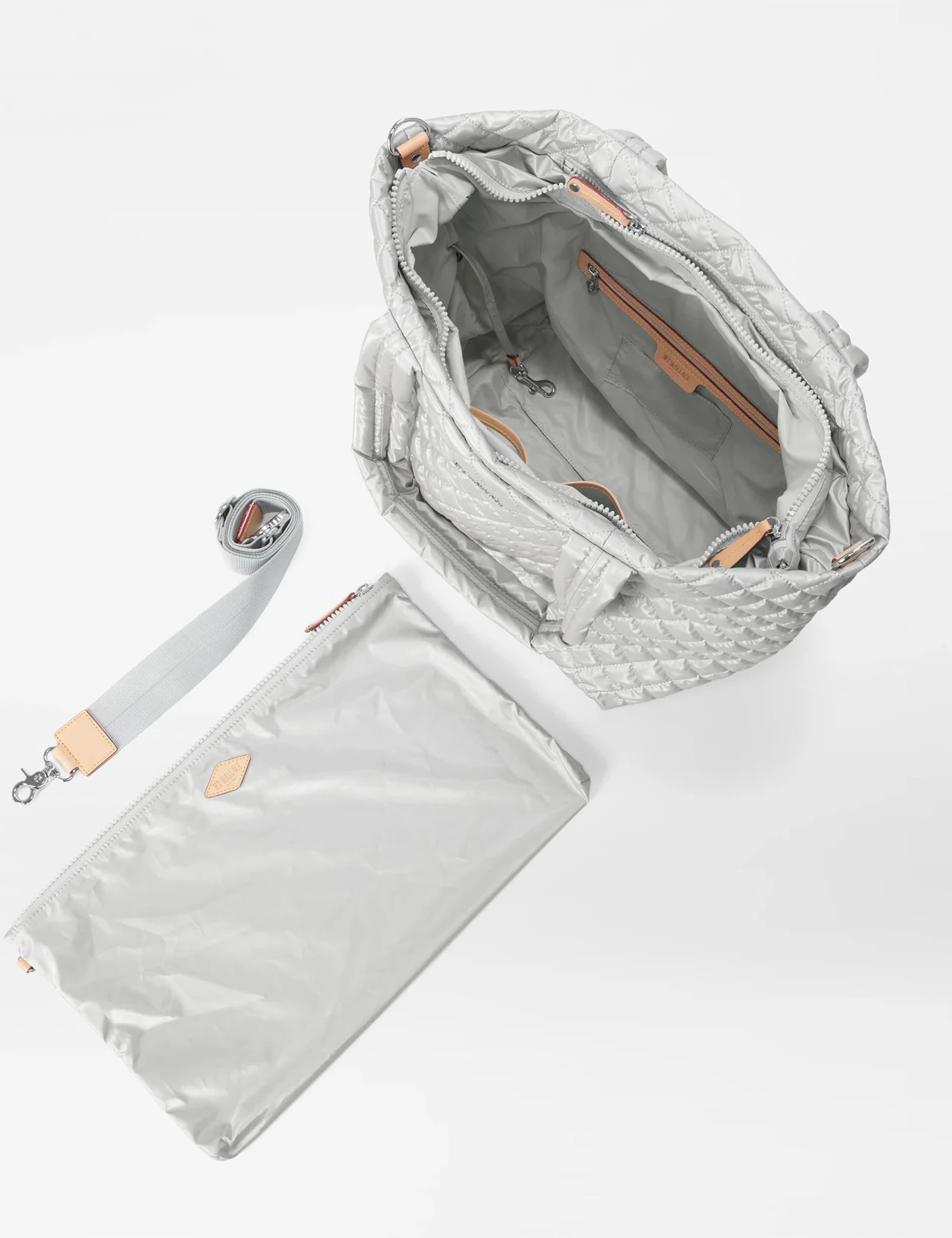 Gym, work or overnight stay, the MZ Wallace Medium Metro Tote Deluxe in Oyster Metallic blends function with fashion. Foldable, packable and crushable, this premium bag is filled with luxe details and trims for an elegant finish.