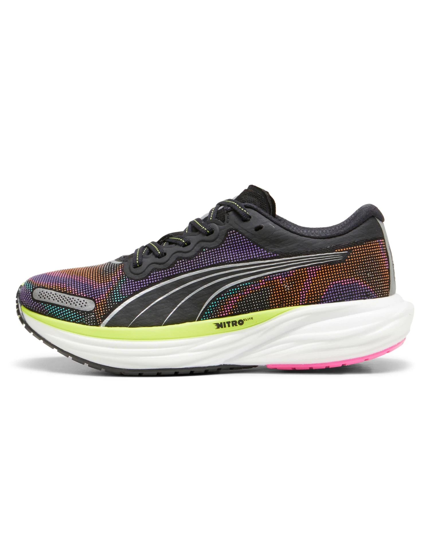 Take the path less travelled with the Deviate Nitro 2, featuring groundbreaking PWTPLATE Technology and NITROFOAM Elite, for unparalleled responsiveness in an astonishingly lightweight design. Tackle the pavement with confidence, thanks to the traction of PUMAGRIP, reflective design elements, and a TPU heel spoiler, making these shoes the ultimate choice for neutral pronators.