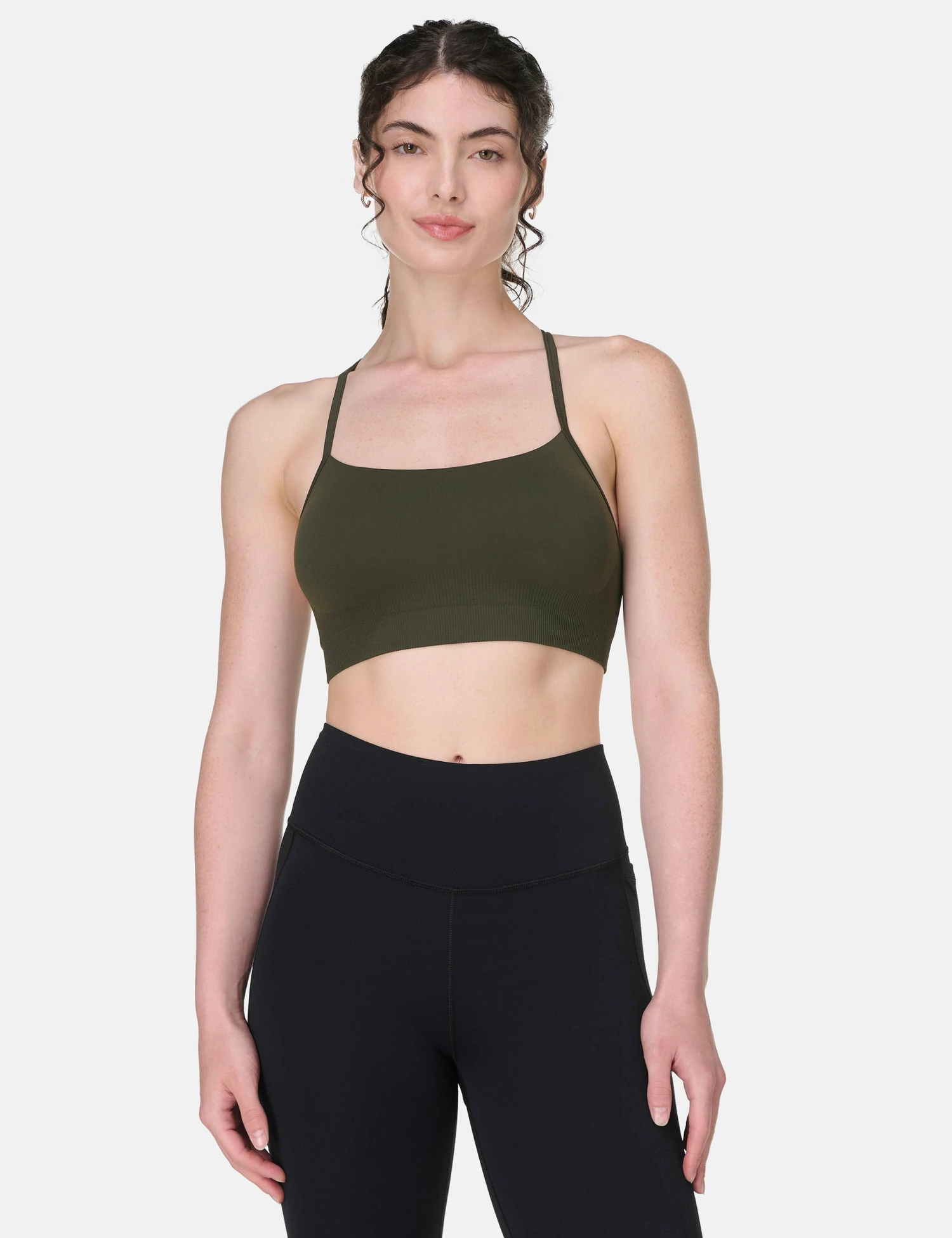 Breathe easy with the Spirit Restored Yoga Bra, designed to move with you. The soft-touch, stretchy fabric and seamless design offer a comfortable, flattering fit. The scoop neck and strappy racerback silhouette with subtle under-bust contouring provide gentle support, while removable pads allow for customisable coverage.