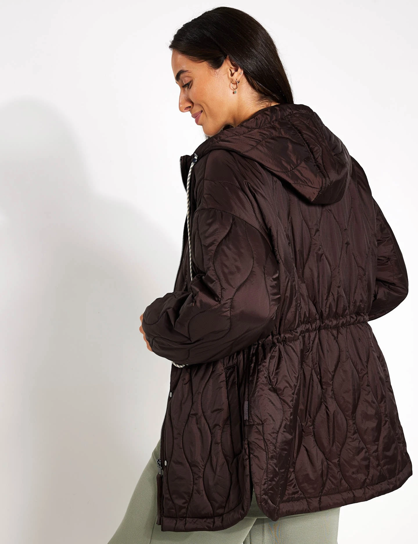 Embrace the outdoors in style with the Caitlin Quilt Jacket. Whether rain or shine, the hood offers added protection, while the adjustable waist ensures a perfect fit for every adventure. With a uniquely shaped hem and elasticated cuffs, you can conquer any adventure with ease.